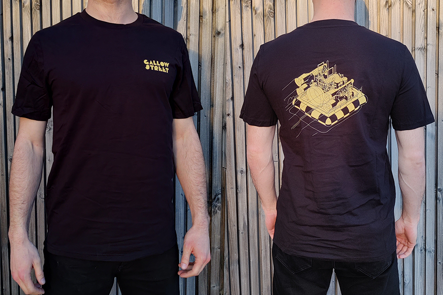 T-shirt with the beautiful album design by Stefan Glerum. Available in a tasteful cream with cyan print version and a classic black with yellow print version.